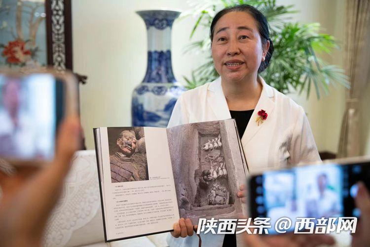 秦始皇帝陵博物院副院长田静为记者们讲解兵马俑保护工作。