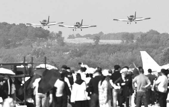 图为观众欣赏特技飞行表演。 本报记者 查金辉 赵敬东 摄