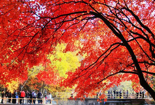 作为“中国枫叶之都”,本溪的枫叶以种类最全、色彩最艳、持续最久闻名遐迩。其种类从3角枫、5角枫到13角枫等多达16种。而“十一”国庆假期正是这场视觉盛宴的巅峰时刻。