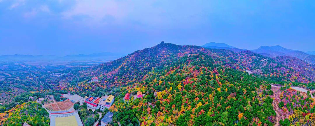 气温,把海棠山雕琢成立体画廊。当平均气温持续低于10℃且日较差增大,叶片中糖分转化为花青素,红、紫色调格外鲜明;充足的日照让秋叶透亮,配合高能见度的清爽天气,极适宜登山赏景与摄影创作。山间古刹掩映于五彩斑斓之中,禅意与秋韵交融,洗涤心灵。