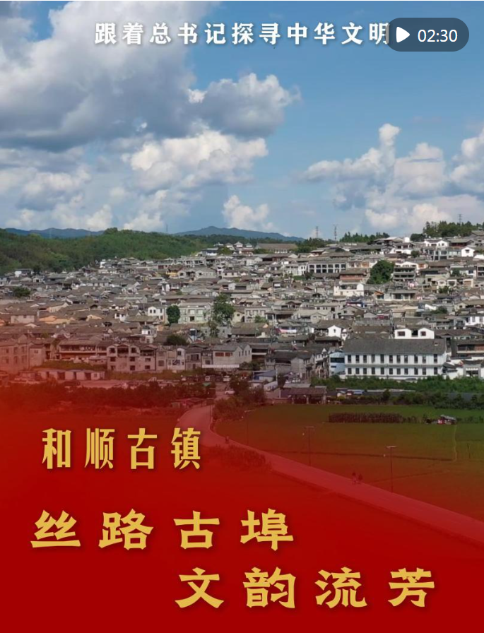 2020年1月19日,习近平总书记来到云南腾冲和顺古镇考察调研。和顺是古代川、滇、缅、印南方陆上“丝绸之路”的必经之地,保存了比较完整的明清古建筑群。考察中,习近平总书记走进和顺图书馆,了解古镇历史文化传承和振兴文化教育情况。