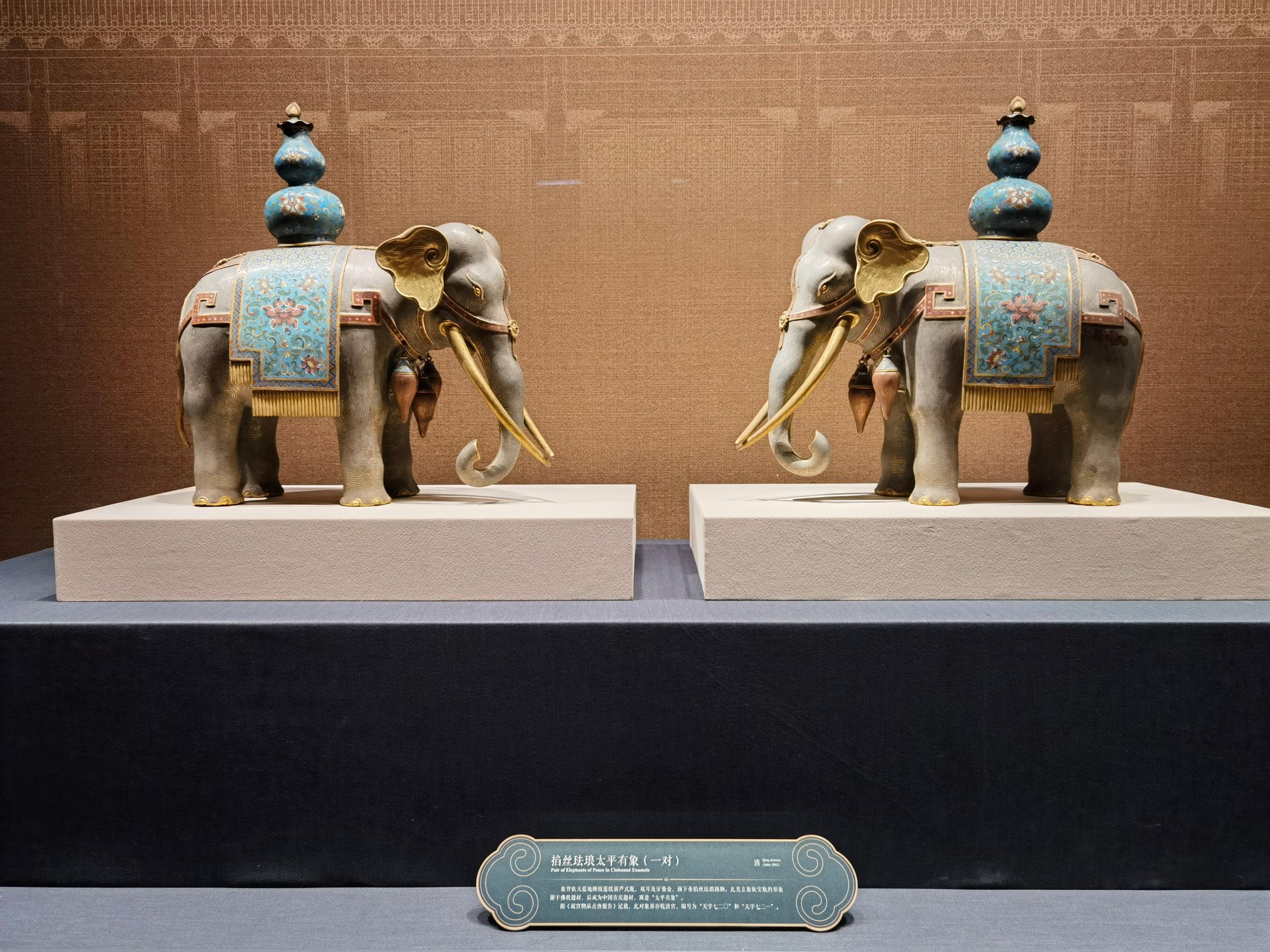 △故宫展出的掐丝珐琅太平有象。(总台央视记者程爱华拍摄)