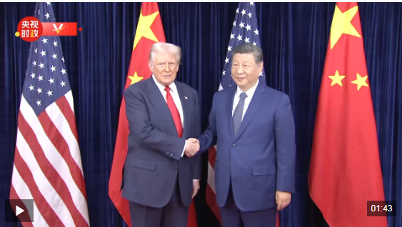 当地时间10月30日上午,国家主席习近平在釜山同美国总统特朗普举行会晤。
