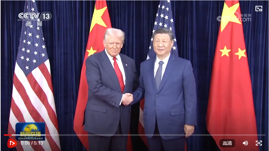 当地时间10月30日,国家主席习近平在釜山同美国总统特朗普举行会晤。