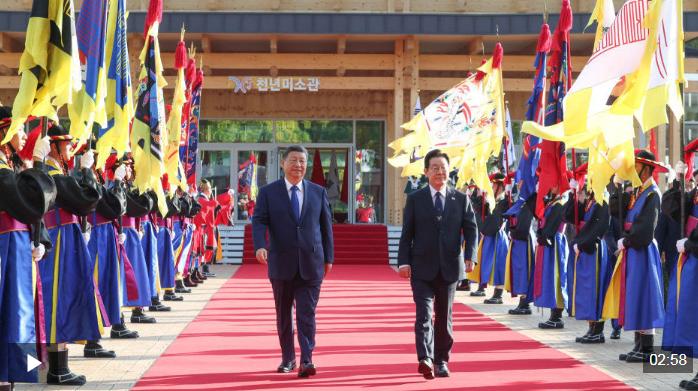 习近平乘车抵达庆州博物馆 韩国总统热情迎接