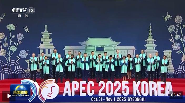 各成员领导人身穿东道主特别设计的服饰在会后拍摄“全家福”,是APEC大家庭的传统保留环节。1日会议结束后,与会经济体领导人在充满韩国民族元素的合影台前留下属于庆州的“APEC时刻”。