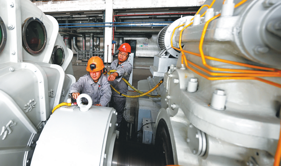 图为工作人员正在对重点设备进行检查。