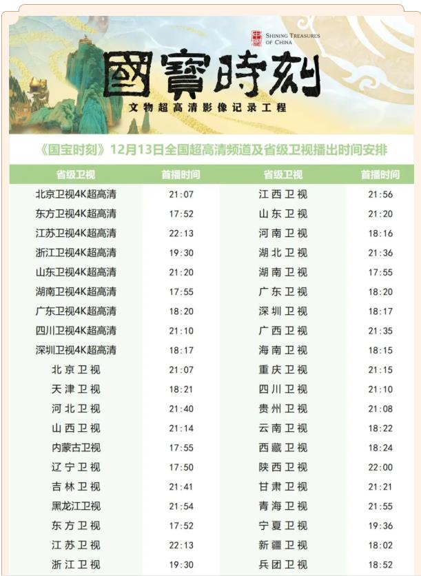 12月13日,《国宝时刻》辽宁篇首篇《摹顾恺之洛神赋图》卷今天播出。该片作为文物超高清影像记录工程成果,联动全国30多家省级广播电视台及文博单位,遴选100件代表性文物进行拍摄、制作。学习强国、央视频、人民日报、全国省级卫视及所属新媒体客户端账号矩阵、爱奇艺、优酷、腾讯视频、芒果TV、哔哩哔哩、抖音、快手等平台联动播出。