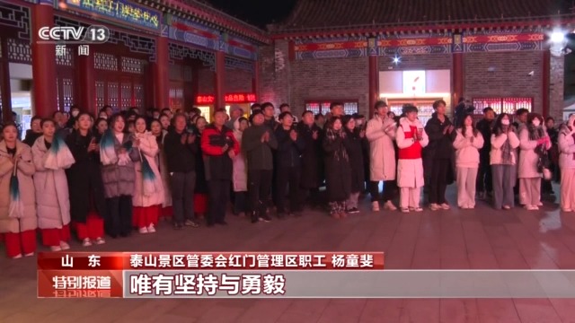 泰山景区管委会红门管理区职工 杨童斐:习近平总书记的新年贺词中,句句鼓励人民,事事关于人民。作为一名泰山上的基层工作人员,我感到在中国式现代化新征程上,正如我们日常工作一样,常常需要去攀登悬崖峭壁,唯有坚持与勇毅,方能领略山顶的壮丽风景。