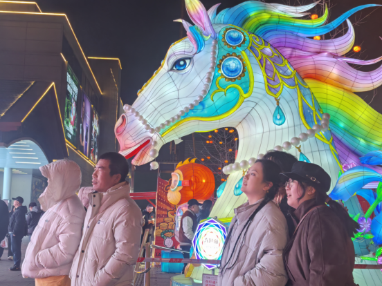 在故宫一带,沈阳方城迎春灯会已经点亮。五光十色的霓虹灯竞相绽放。马主题的花灯成为今年的主流,它们或飞腾,或挺立,或以卡通造型示人,引人观赏流连,合影留念。当然,还有龙凤彩灯、海鲜彩灯、花卉彩灯……样式繁多,数不胜数,仿佛要将整个天空都点亮。
