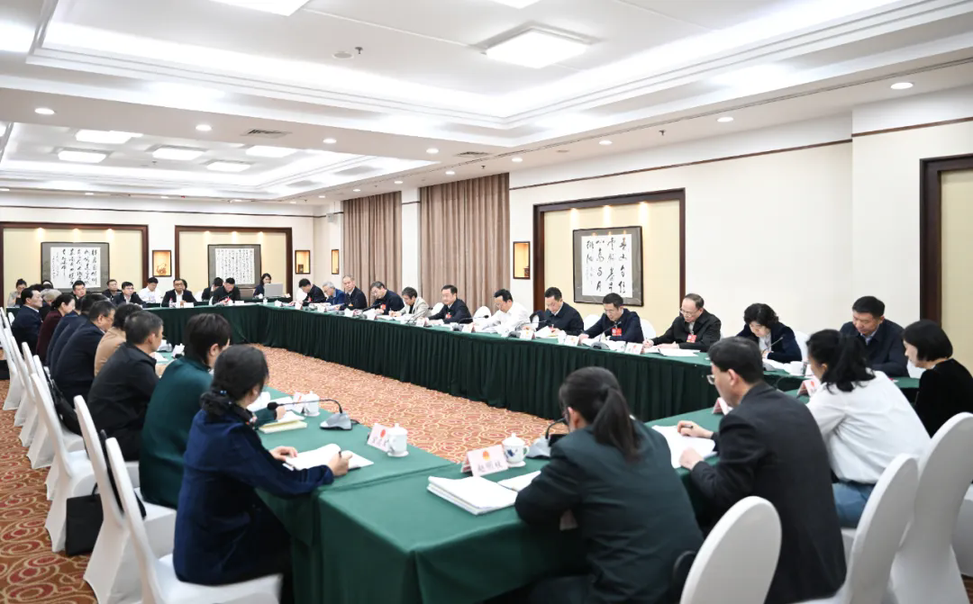 3月6日下午,出席十四届全国人大四次会议的辽宁代表团在住地举行小组会议,审议政府工作报告,审查“十五五”规划纲要草案。辽宁代表团团长许昆林发言,王新伟、杨晓超、郝鹏、侯建国等代表参加审议。工业和信息化部副部长辛国斌及国家有关部委同志到会听取意见。