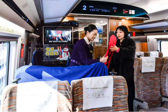 为破解滑雪爱好者雪具携带难题,国铁沈阳局在东北环线25个车站、10趟重点列车试点推行“雪具便利行”服务,旅客通过12306提前预约,即可享受雪具随车运输、专人搬运服务,真正实现“轻装出行、畅玩冰雪”。