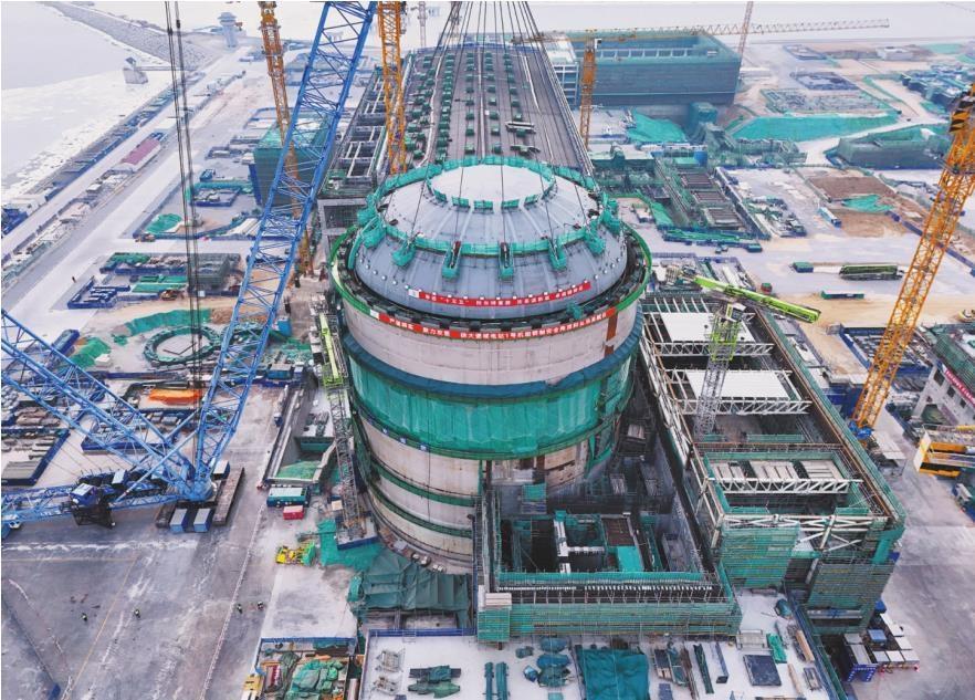 “顶封头是徐大堡核电项目1号机组核岛钢质安全壳的最后一个大型模块,它的吊装成功,标志着该机组建设从土建施工全面转入安装阶段。”现场负责人介绍。