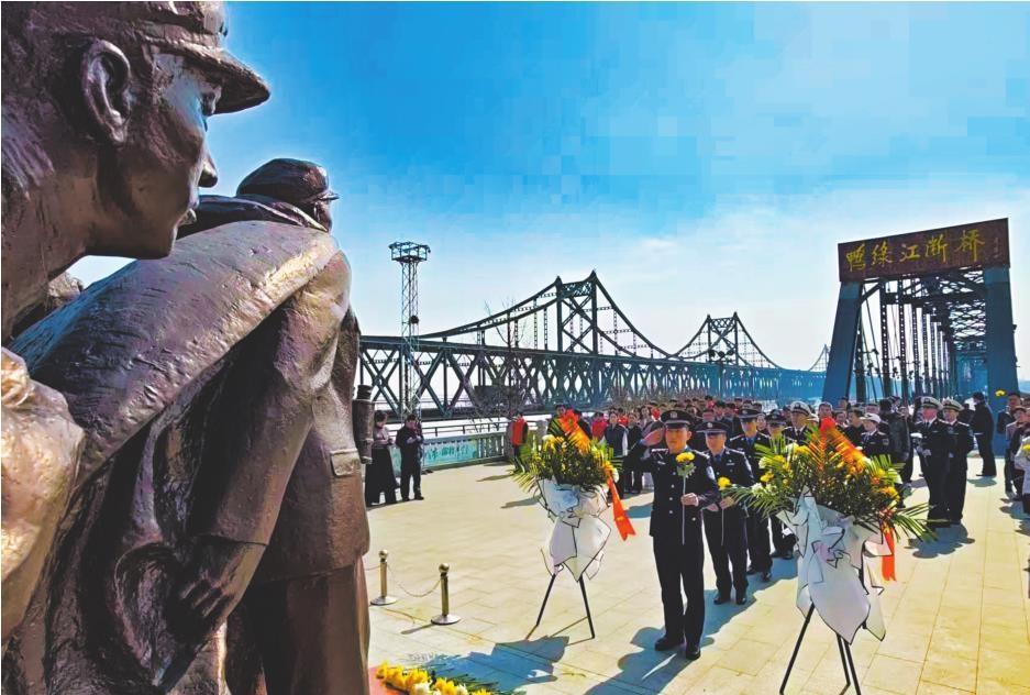 清明节前夕,丹东举办“缅怀抗美援朝英烈 传承红色奋进精神”主题活动,当地各界人士以庄重仪式缅怀革命先烈。 本报特约记者 周广庆 摄