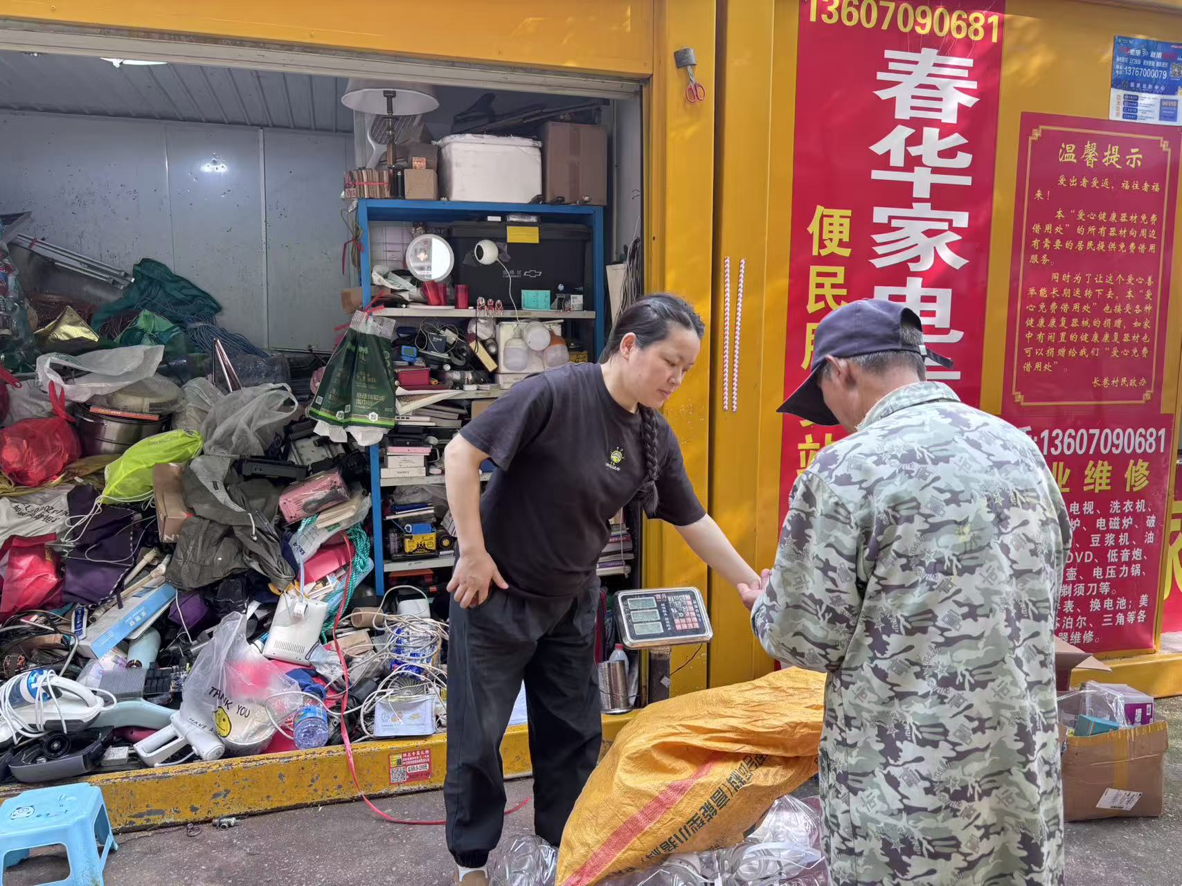 章先生是四个摊位中第一个“铁皮屋”的主人,主营收废品。他告诉记者,自己原来干的是司机,东奔西跑不着家,也亲眼见过“魏阿姨们打游击”的艰辛,明白赚钱的不容易。后来,他听说村里想给流动摊贩找个固定地方,便主动提出:“铁皮棚子由我来提供,免费给大家使用。”他自掏腰包,买来活动板房,又请吊车运到现场。一个、两个……陆续搭起四个棚子,花了近两万元,他自己只用一间,其余免费让给其他手艺人。