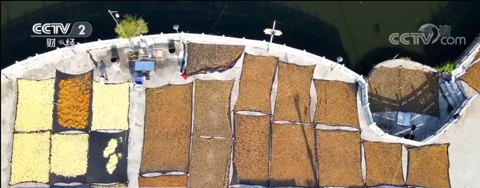 在揭阳市揭东区埔田镇,当地村民正将竹笋均匀地铺开晾晒。在时间和阳光的共同作用下,白嫩的竹笋会变成金黄的笋脯。从高空俯瞰,一幅金黄色的晒秋丰收图跃然眼底。
