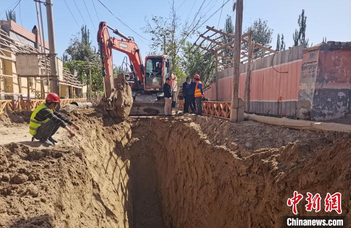 6月5日,新疆阿克苏地区乌什县,铺设农村污水管网。 阿克苏地区乌什县乡村振兴局提供