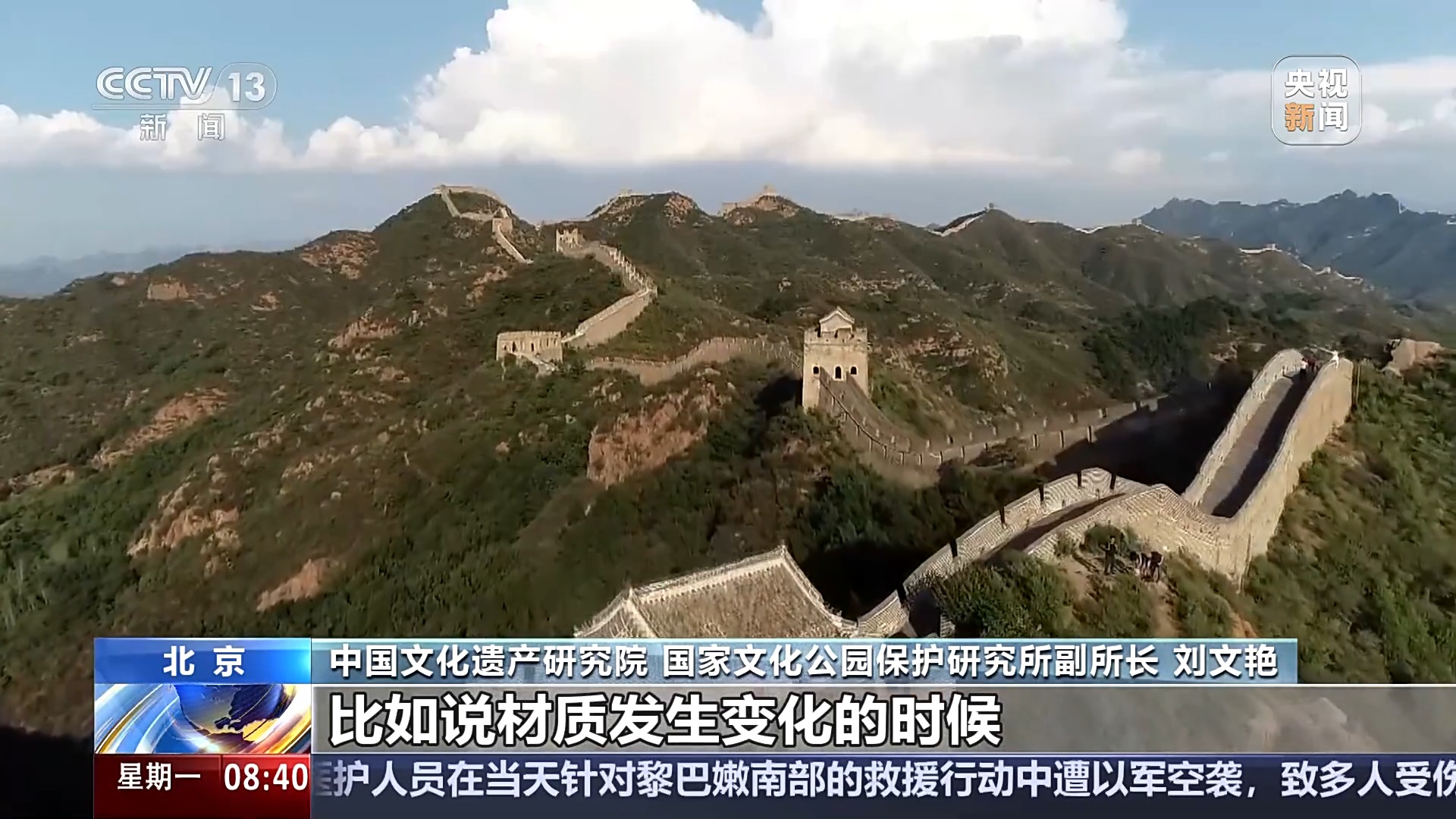 中国文化遗产研究院、国家文化公园保护研究所副所长 刘文艳:我们是按照一定的分段原则,比如说材质发生变化的时候,我就要分成一段,比如说中间有豁口了,我也要分成一段,时代不同当然首先是不同的段落了,这样就把墙体分成了不同的段。