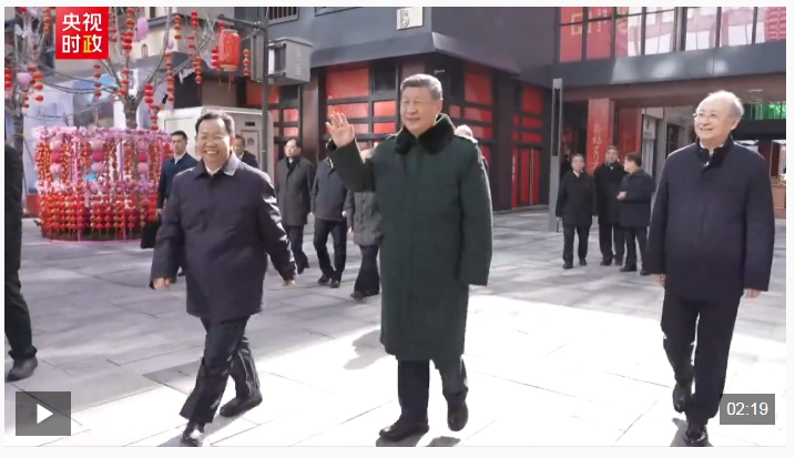 2月10日上午,在北京考察调研的习近平总书记来到隆福寺街区,了解当地丰富节日市场供应、打造城市特色活力片区等情况,看望慰问基层干部群众。这一天恰逢农历小年,隆福大厦前,新春市集吸引了大量市民和游客。习近平饶有兴致察看各式年货摊位,同现场群众亲切交流。