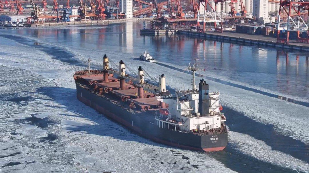 位于辽东半岛东部的辽宁营口港是我国的“北粮南运”的重要枢纽。2025年,营口港北粮南运总量3148万吨,同比增长5%。受近期寒潮天气的影响,眼下,营口港的港口航道、锚地、港池等重点水域出现大面积浮冰。