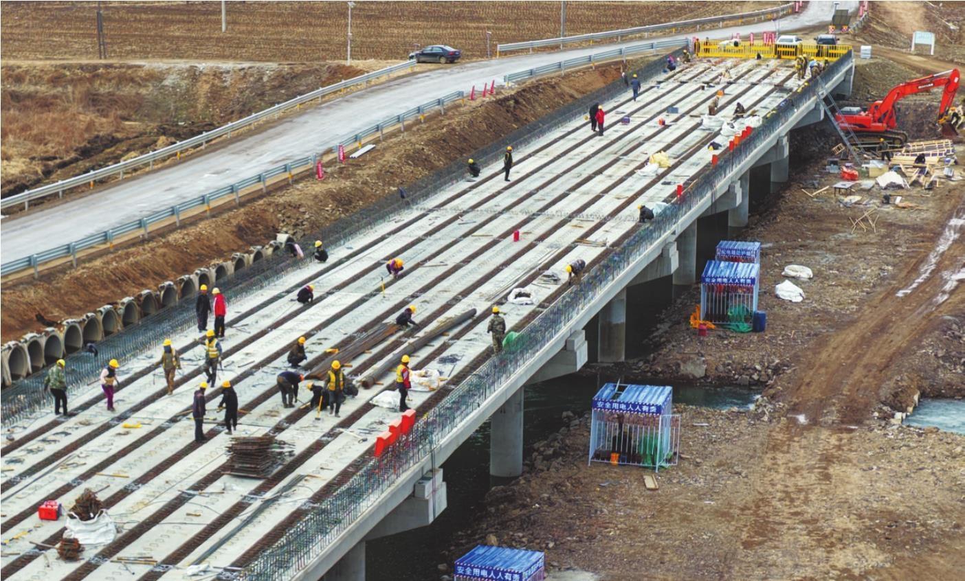 4月10日,抚顺市新宾满族自治县旺双线江南大桥上,近百名施工人员正在进行大桥箱梁钢筋焊接,全力推进“十五冬”配套基础设施项目——龙岗山滑雪场配套道路工程的进度,为“十五冬”的顺利举办打好基础。