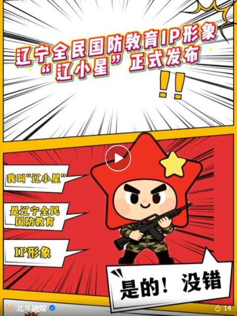 为深入贯彻落实《中华人民共和国国防教育法》,创新全民国防教育宣传形式和载体,打造更具亲和力、传播力和影响力的国防教育品牌,辽宁省全民国防教育办公室组织设计了辽宁全民国防教育IP形象“辽小星”,并于4月10日正式发布。