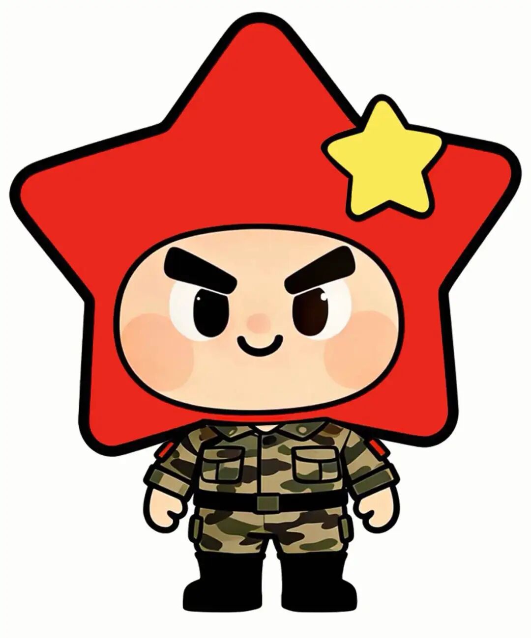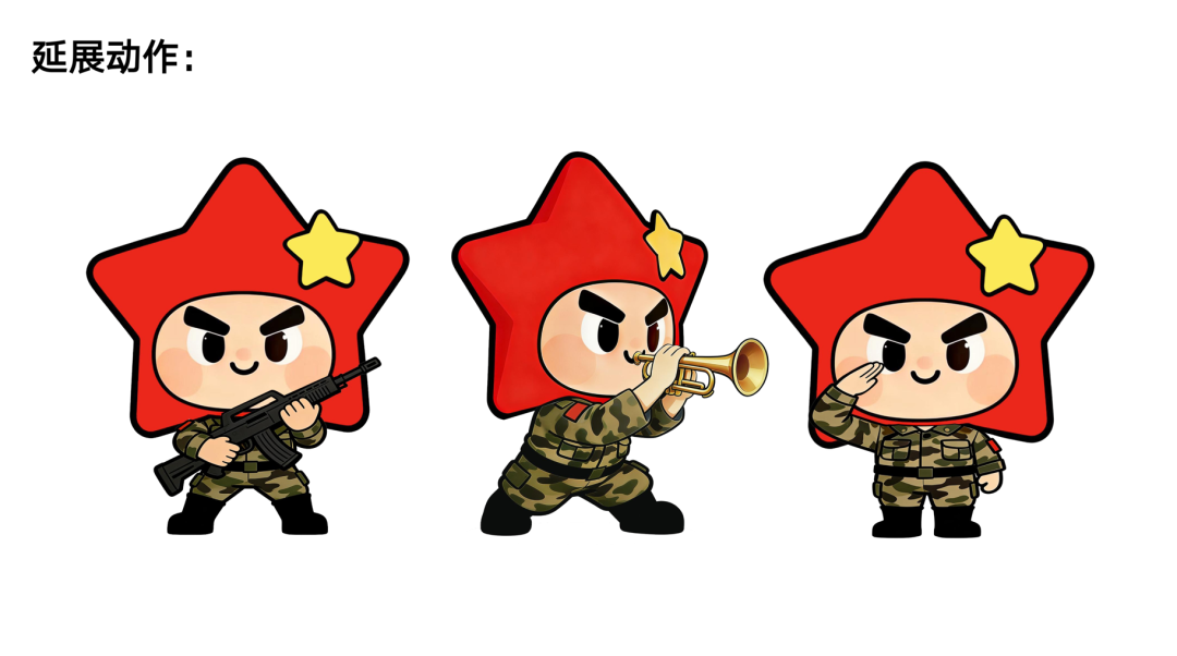 “辽小星”IP形象将五角星元素与军旅形象有机结合,体现辽宁地域特色。主体红色五角星代表红色传承与国防初心;侧部黄色五角星象征荣誉、理想与光明未来;面部神态体现勇敢坚毅品格和阳光向上的精神面貌;着装造型关联军旅、国防场景,体现严格纪律、团队协作和优良作风等。